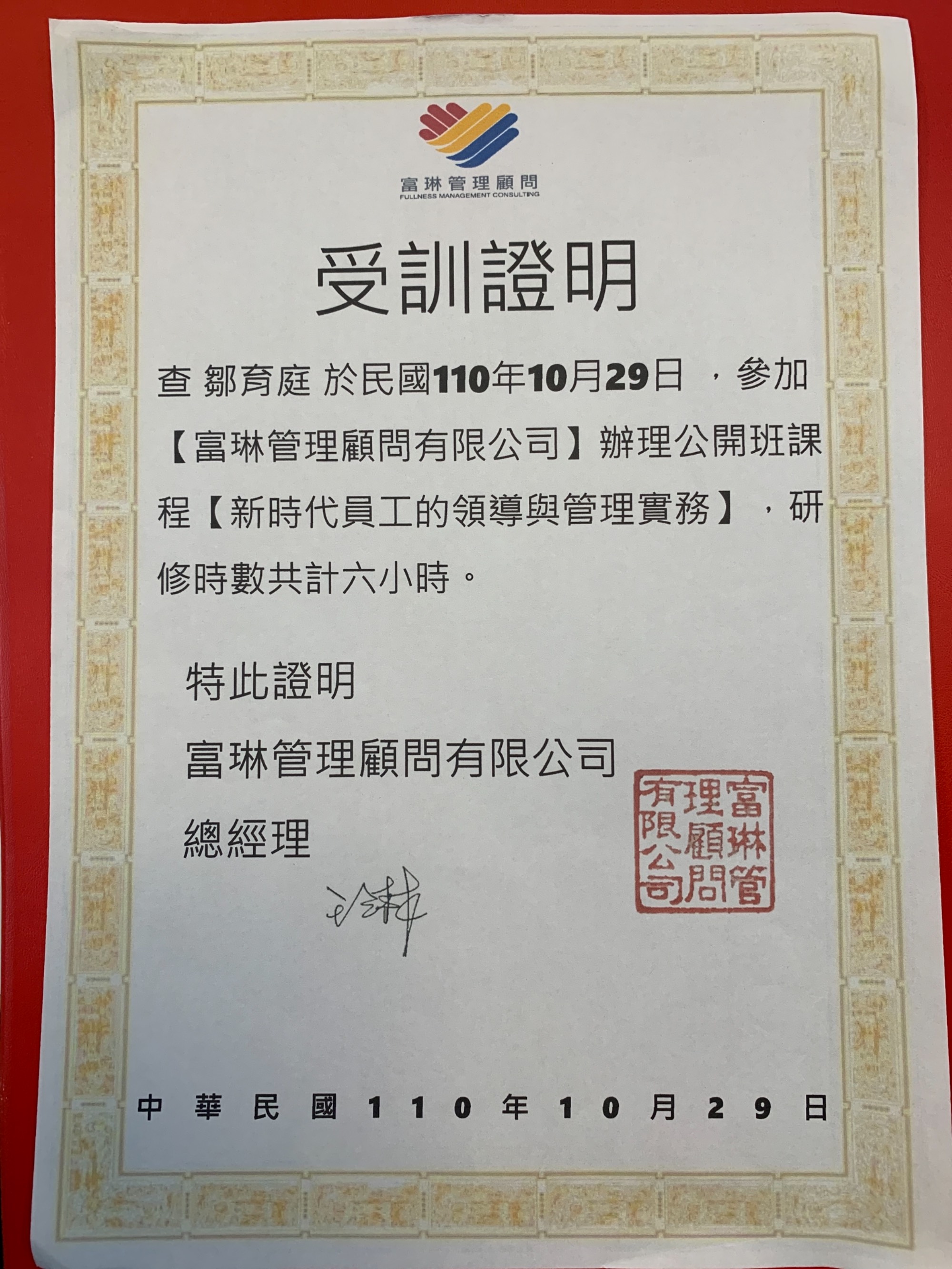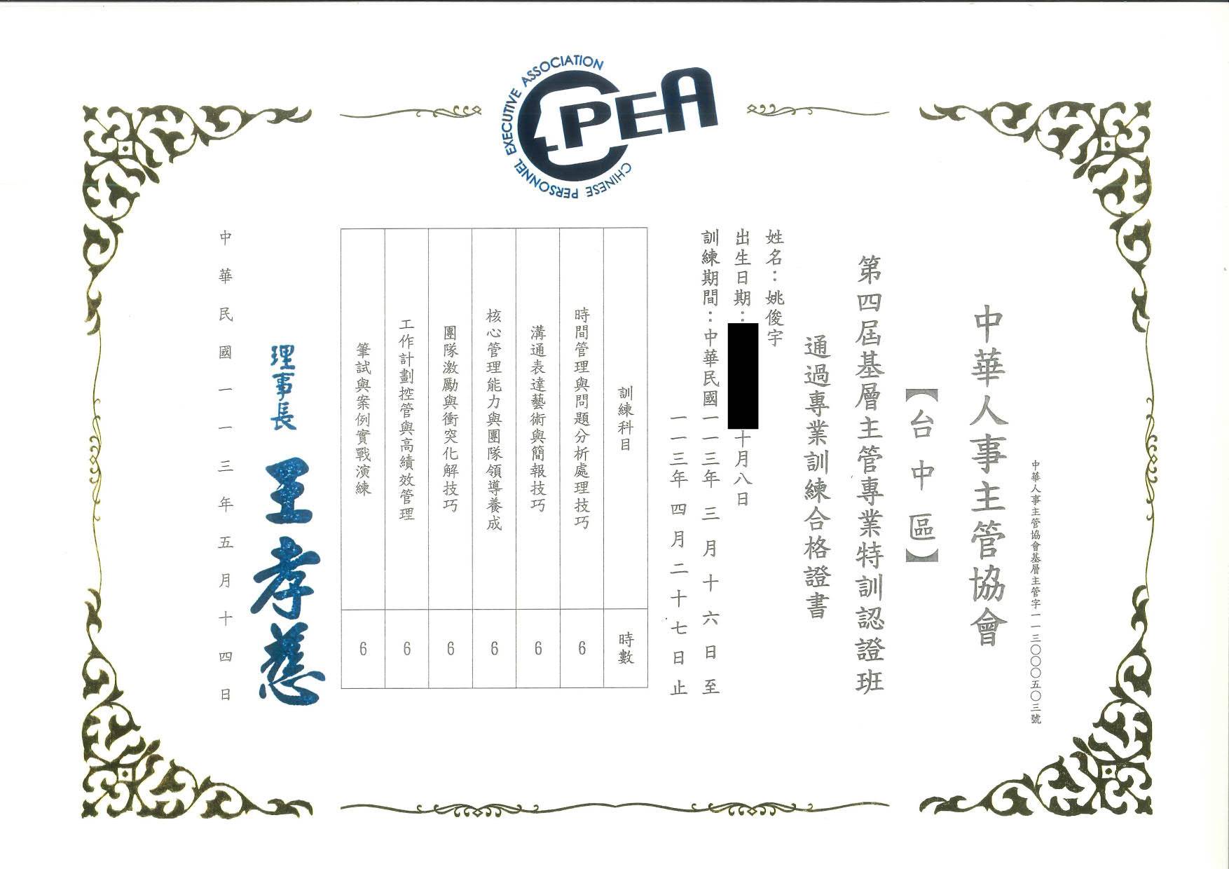 第四屆基層主管專業特訓認證班 |