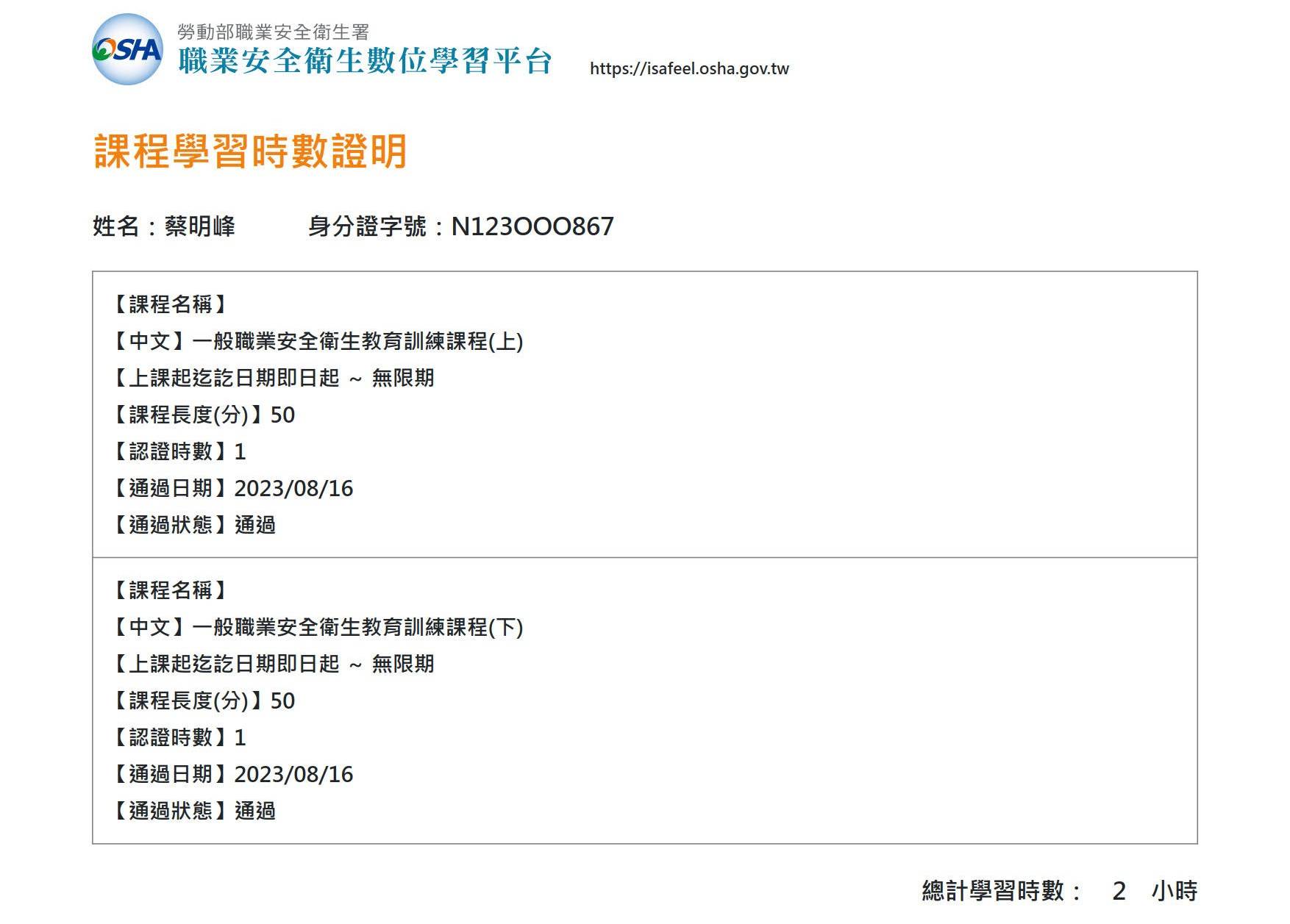 學員姓名: 蔡明峰