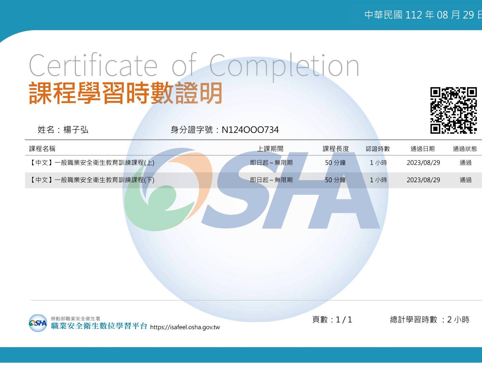 學員姓名: 楊子弘