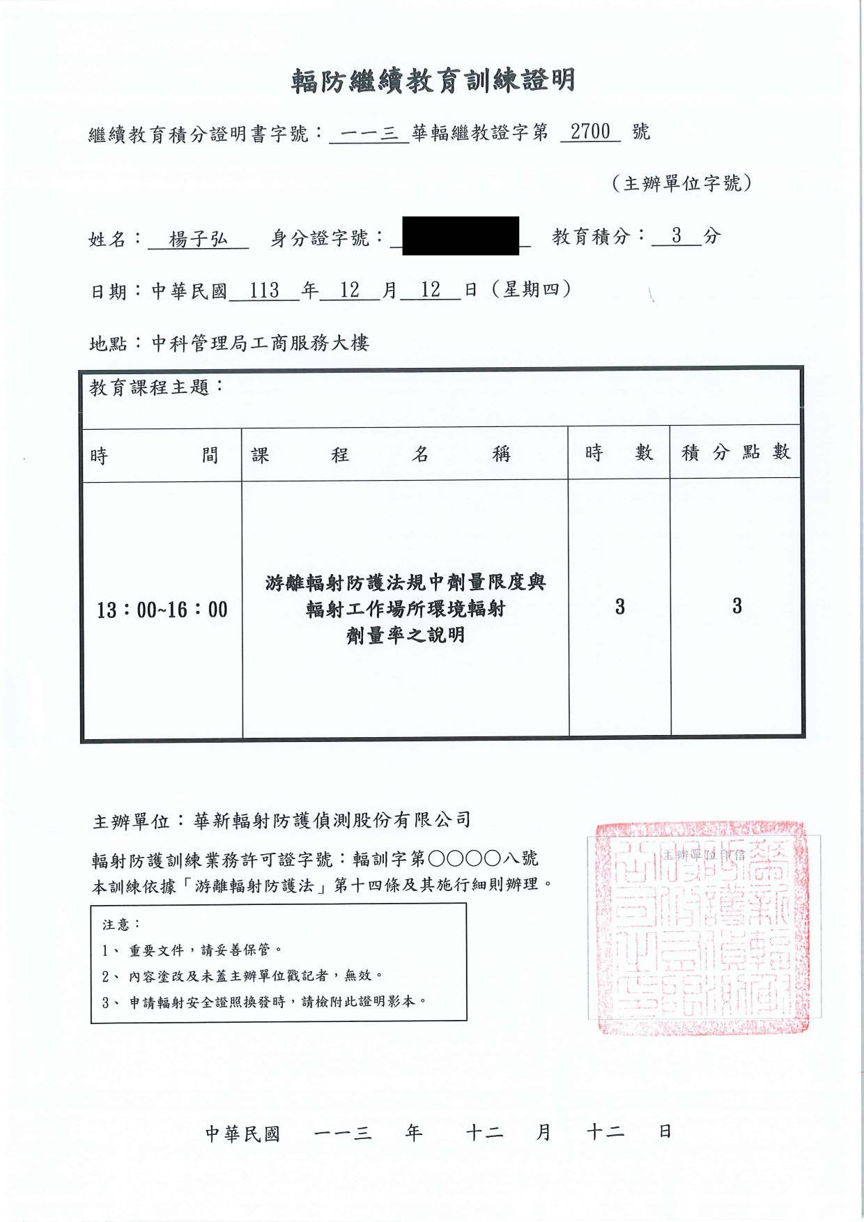 游離輻射繼續教育講習課程(3小時)