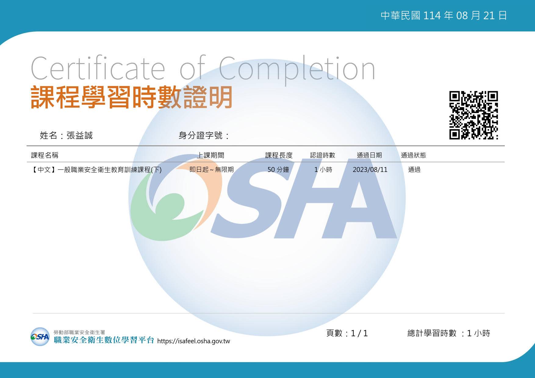 一般職業安全教育訓練 |