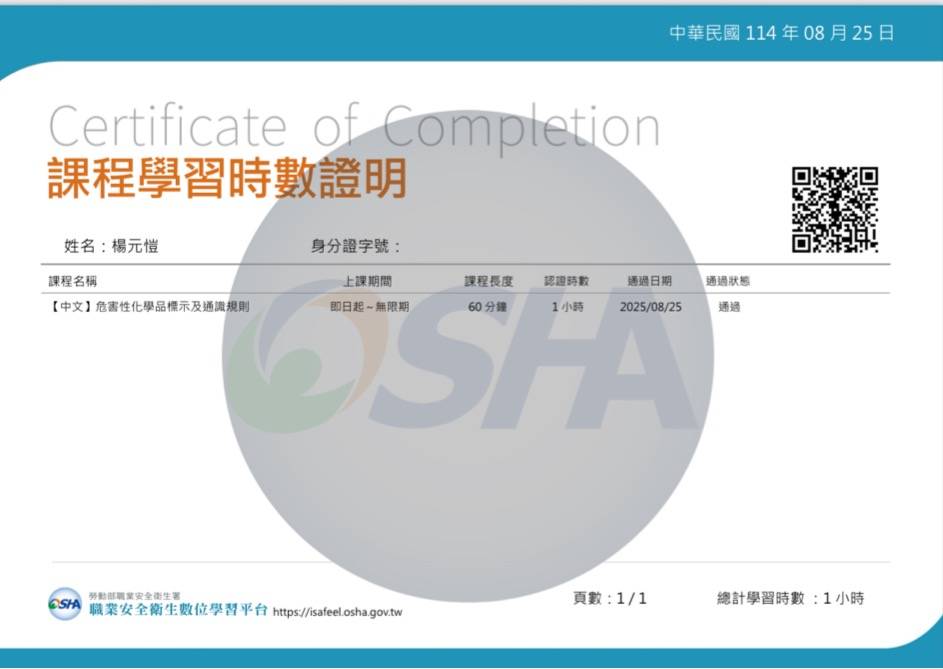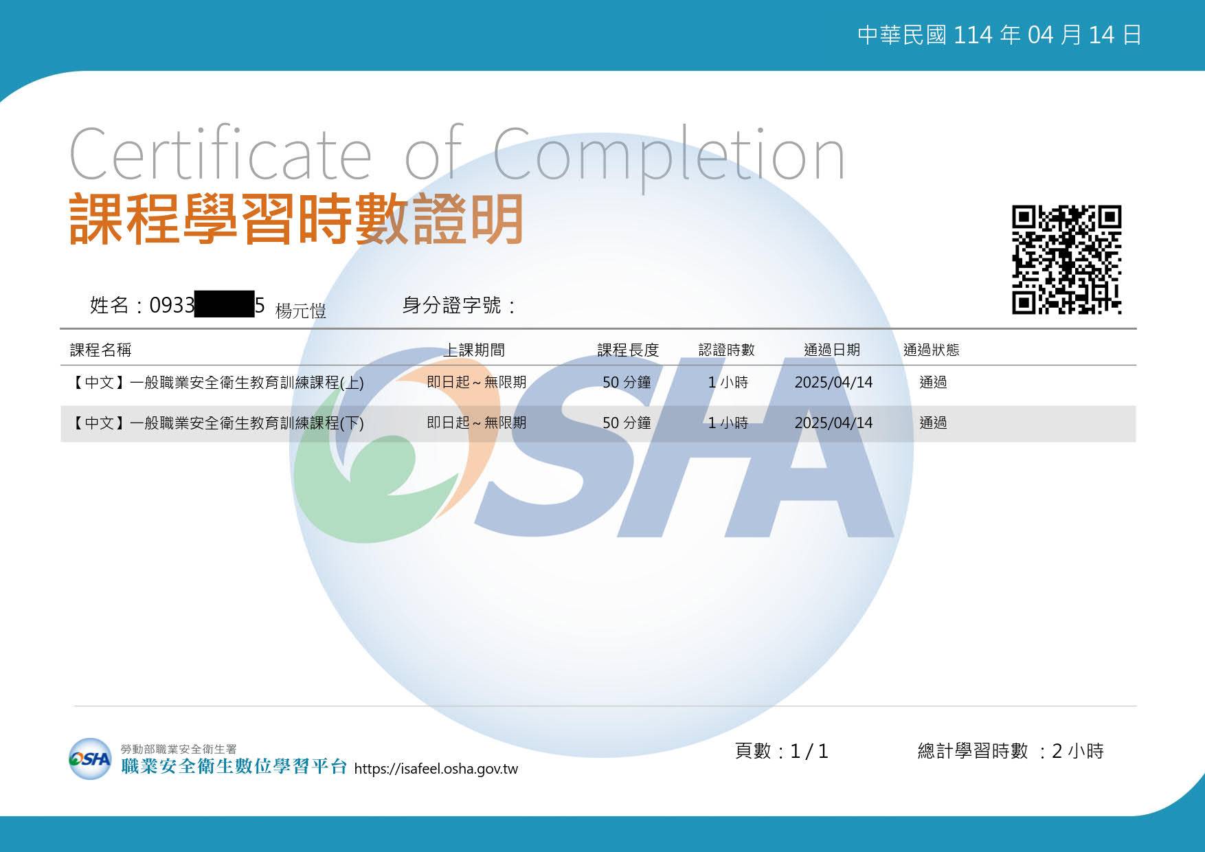 1.一般職業安全衛生教育訓練課程(上) 2.一般職業安全衛生教育訓練課程(下)