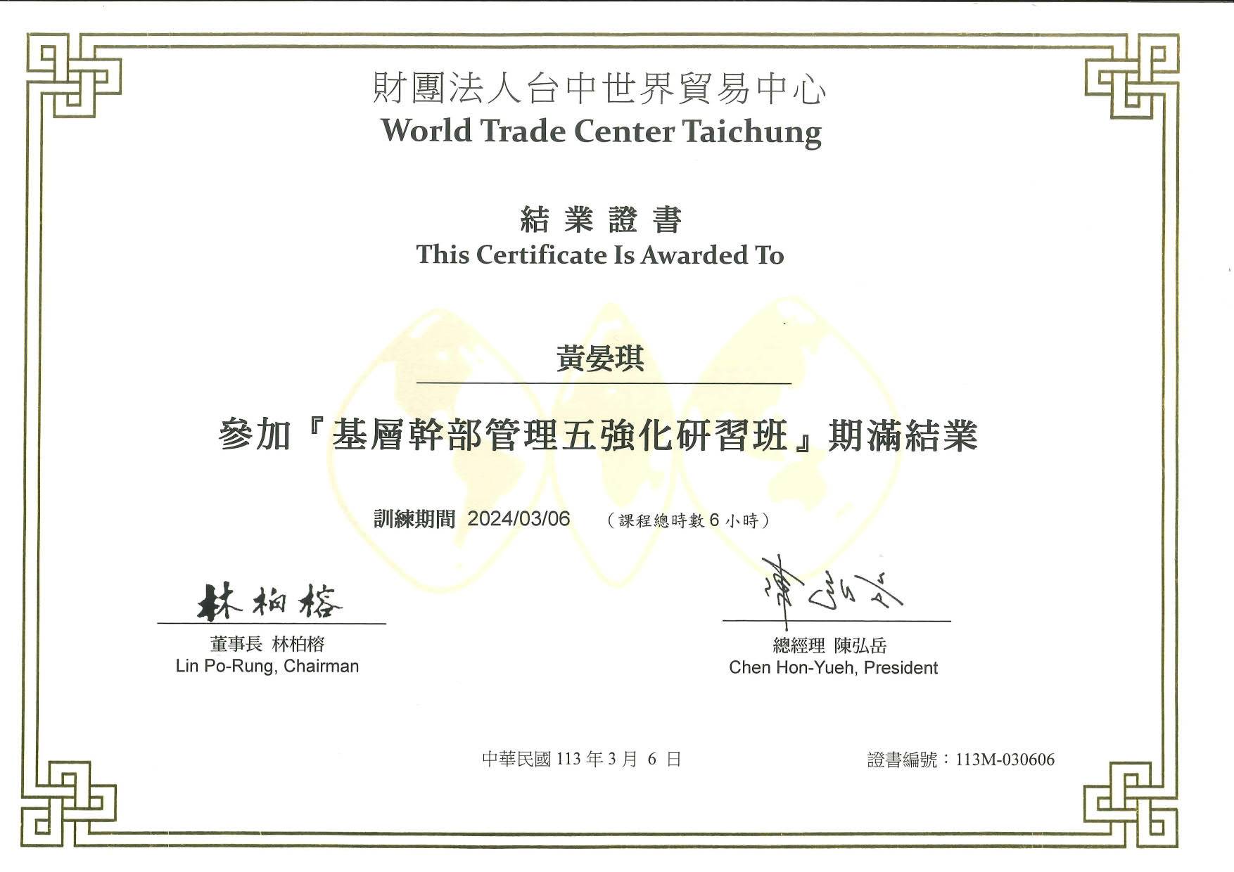 學員姓名: 黃晏琪