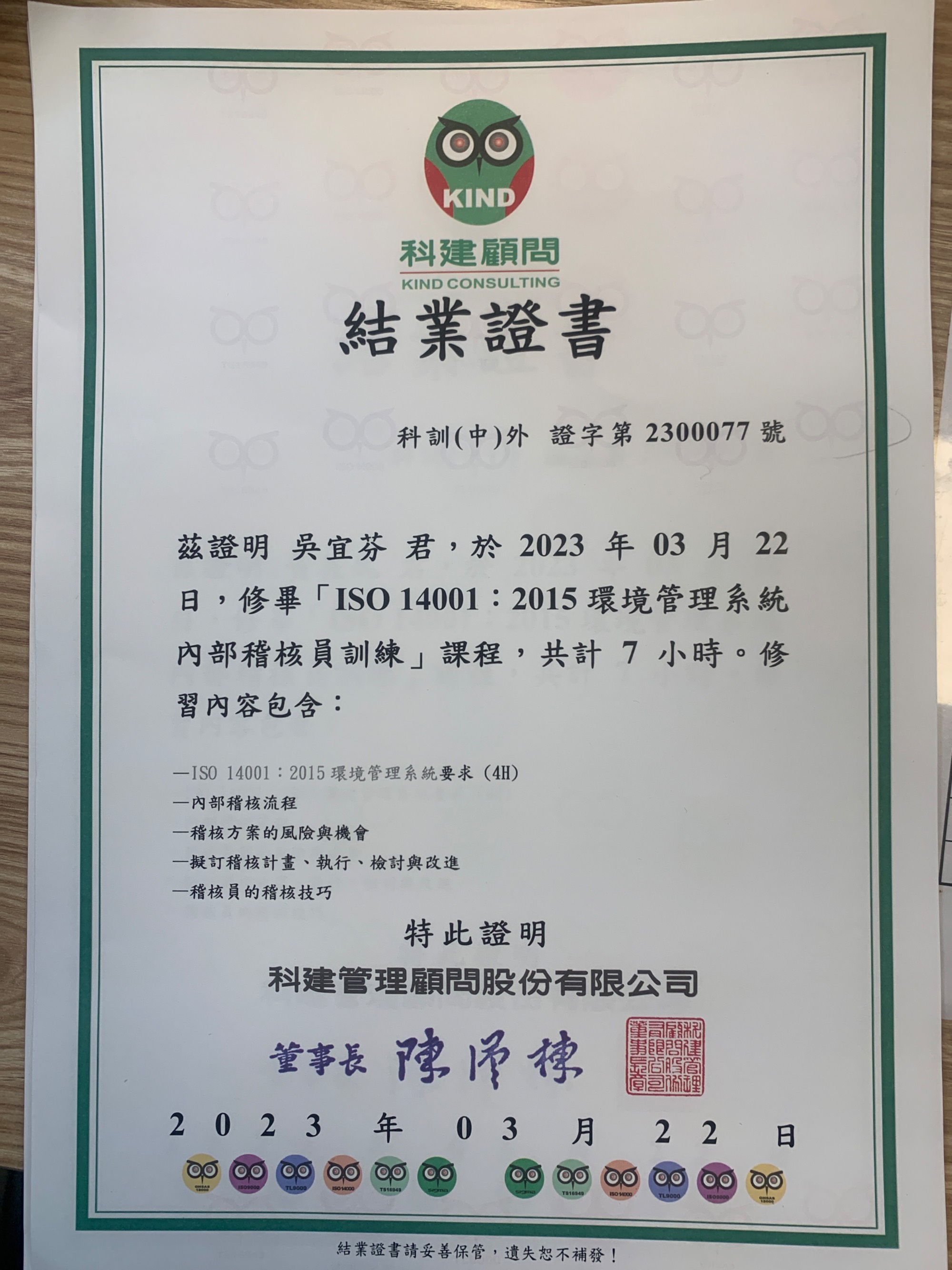 ISO 14001:2015 環境管理系統內部稽核員訓練 |