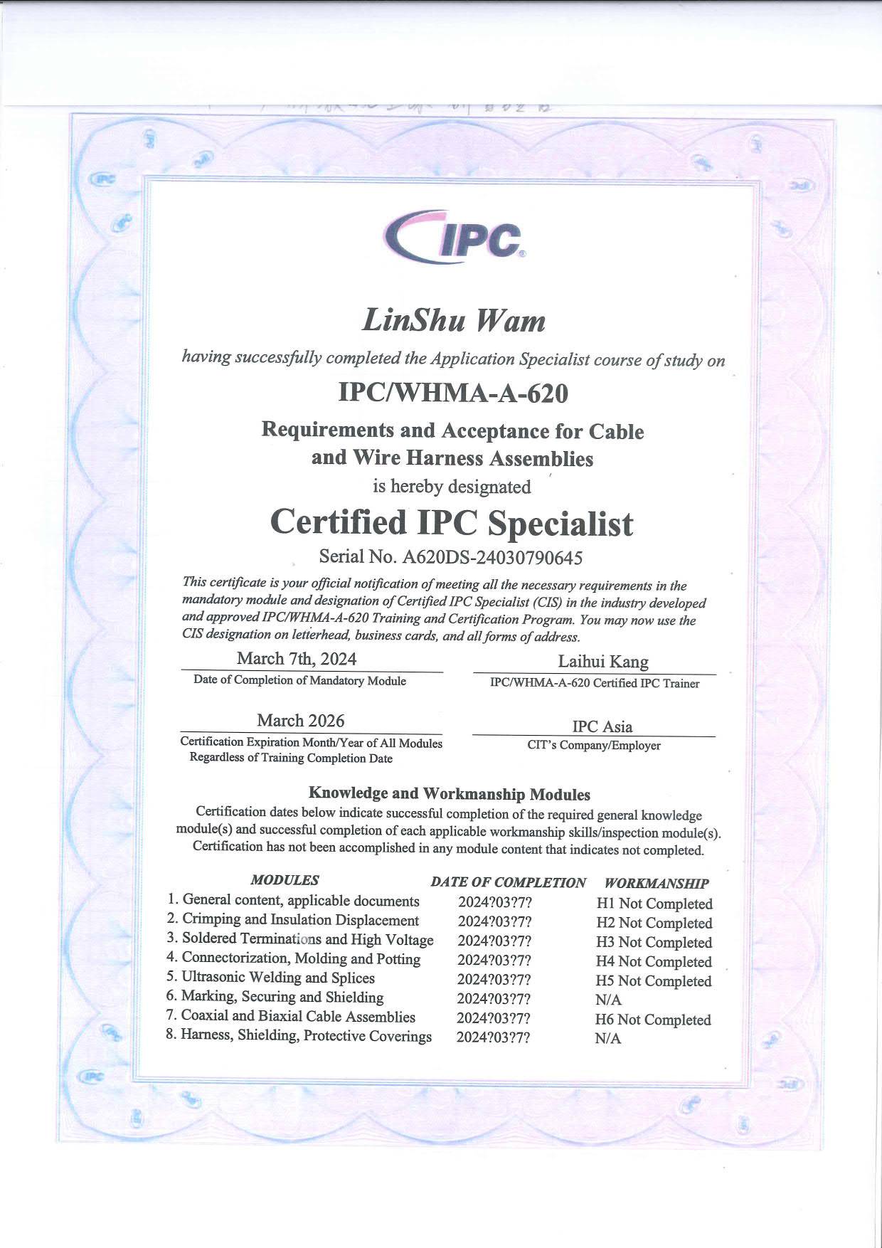 IPC-A-620 CIS /CIT 公開班(第一梯) |