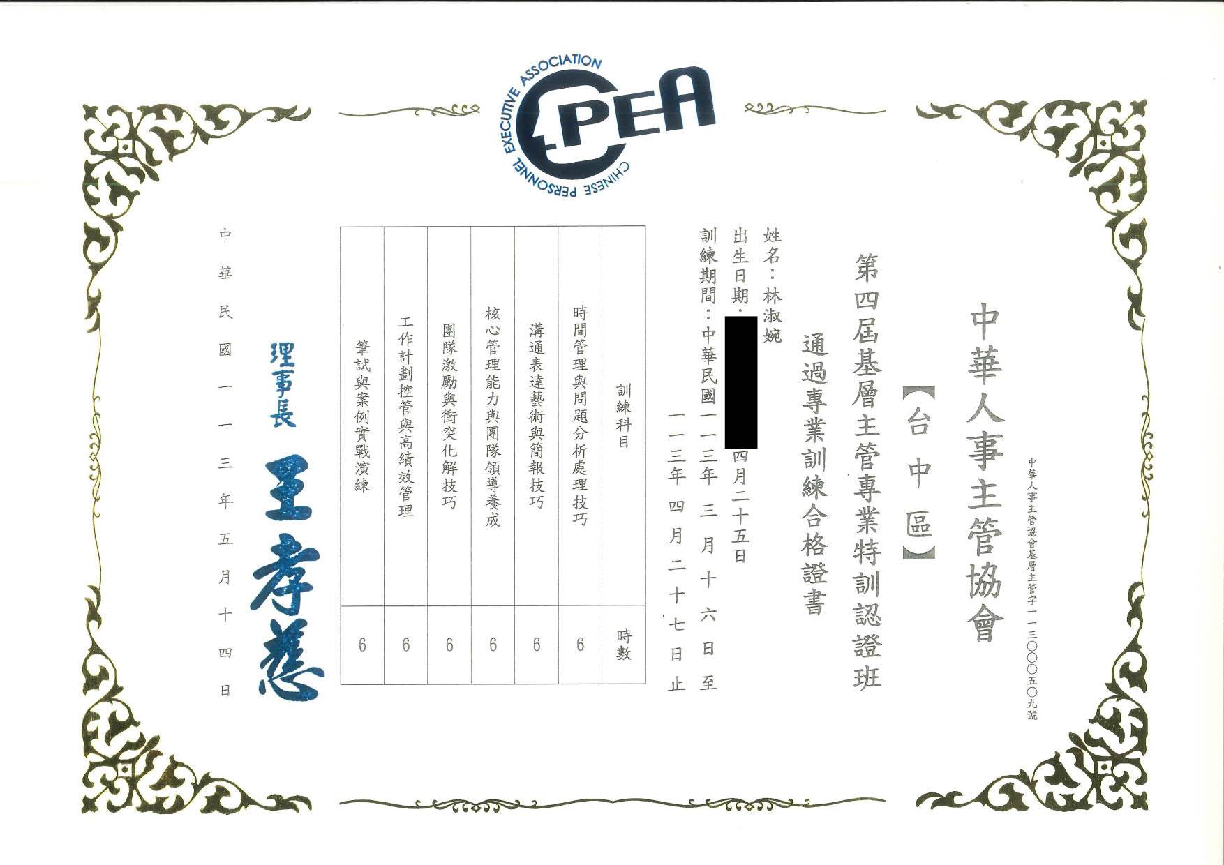 第四屆基層主管專業特訓認證班 |