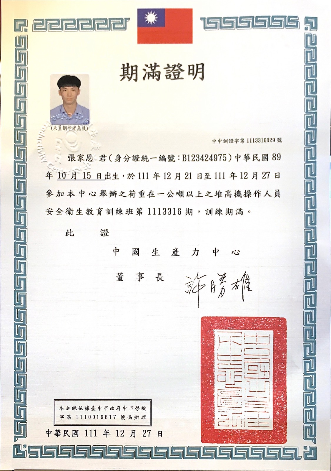 荷重在一公噸以上堆高機操作人員 |